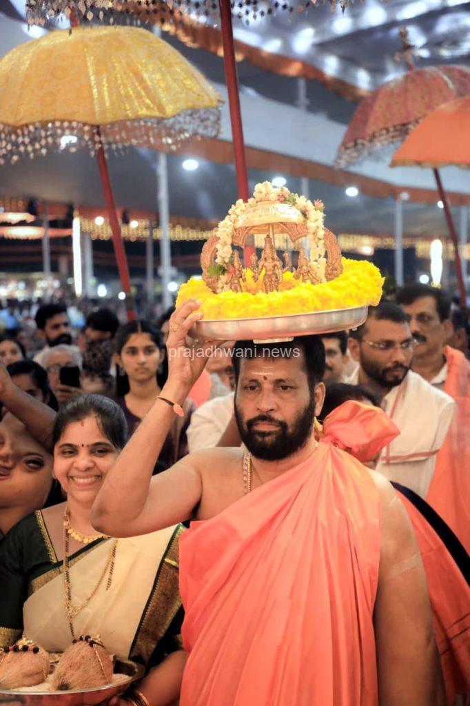 ಮಾಂಗಲ್ಯ ಧಾರಣೆಯ ಶುಭಘಳಿಗೆಯಲ್ಲಿ ಸಹಸ್ರಾರು ಭಕ್ತರಿಂದ ಗೋವಿಂದಾ ಗೋವಿಂದಾ ಉದ್ಘೋಷ ಮೊಳಗಿತು.ಮಹಾಮಂಗಳಾರತಿ ಎತ್ತಿ ಪೂಜೆ ಸಲ್ಲಿಸಿ ಪ್ರಸಾದ ವಿನಿಯೋಗ ಮಾಡುವ ಮೂಲಕ ಕಾರ್ಯಕ್ರಮಕ್ಕೆ ತೆರೆ ಎಳೆಯಲಾಯಿತು.ಕಾರ್ಯಕ್ರಮದಲ್ಲಿ ಸಹಸ್ರಸಹಸ್ರ ಸಂಖ್ಯೆಯ ಭಕ್ತರಿಗೆ ಮಧ್ಯಾಹ್ನ ಮತ್ತು ರಾತ್ರಿ ಅನ್ನಪ್ರಸಾದ ವಿತರಣೆ ನಡೆಯಿತು. ಕಲ್ಯಾಣೋತ್ಸವಕ್ಕೆ ಸಿದ್ಧಪಡಿಸಿದ ಸುಮಾರು 60 ಸಾವಿರ ಚದರ ಅಡಿಯ ಪೆಂಡಾಲ್ನಲ್ಲಿ ಭಕ್ತರು ತುಂಬಿ ತುಳುಕಿದ್ದು, ಪೆಂಡಾಲ್ ಹೊರಗಡೆಯೂ ಭಕ್ತರು ಕಿಕ್ಕಿರಿದು ನೆರೆದಿದ್ದರು.