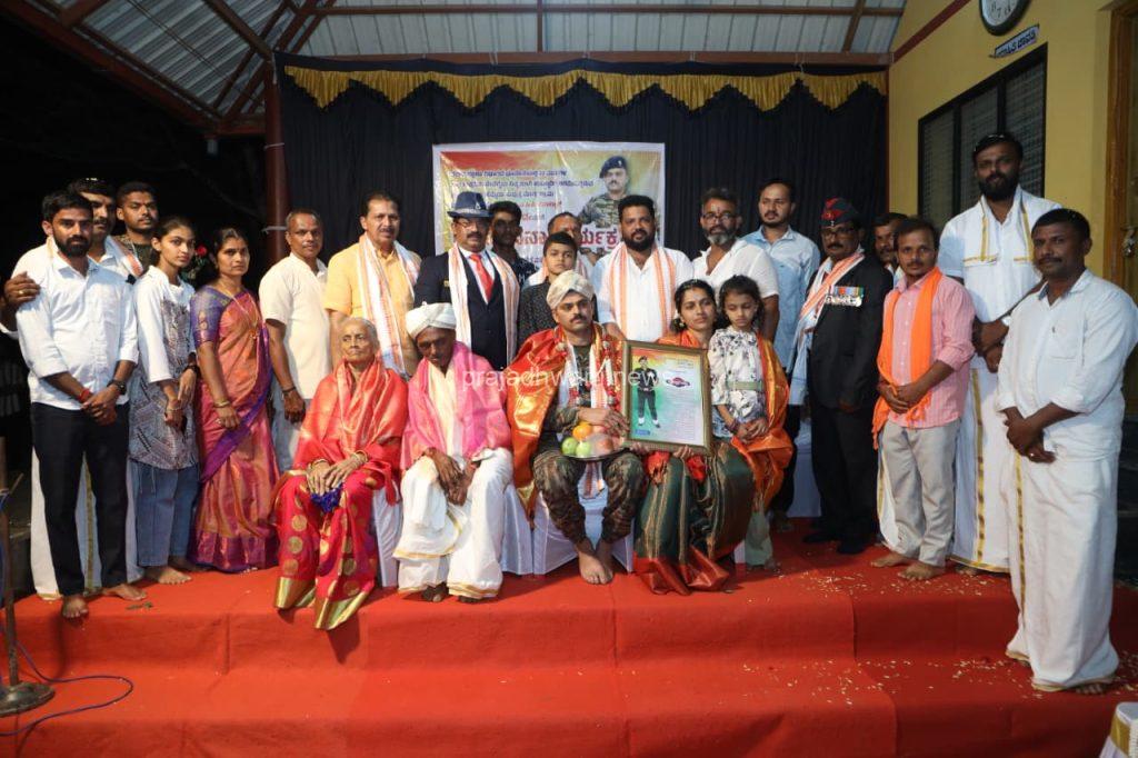 ಮೊಗ್ರು : ಜ 01 ರಾಷ್ಟ್ರ ಭಕ್ತರ ವೇದಿಕೆ ಬಂದಾರು ಮತ್ತು ಮೊಗ್ರು ಗ್ರಾಮ ಇದರ ನೇತೃತ್ವದಲ್ಲಿ ವಿವಿಧ ಸಂಘ ಸಂಸ್ಥೆಗಳು,ನಿವೃತ್ತ ಸೇನಾನಿಗಳ ಸಂಘ ಹಾಗೂ ಊರವರ ಸಹಕಾರದಲ್ಲಿ ಭಾರತ ಮಾತೆಯ ಸೇವೆಯಲ್ಲಿ 22 ವರ್ಷಗಳ ಕಾಲ ಧೈರ್ಯ, ತ್ಯಾಗ ಮತ್ತು ಗೌರವದ ಸೇವೆ ಸಲ್ಲಿಸಿ ಕರ್ತವ್ಯದಿಂದ ನಿವೃತ್ತಿ ಹೊಂದಿ ಫೆ 01 ರಂದು ಹುಟ್ಟೂರಿಗೆ ಆಗಮಿಸಿದ ಬೆಳ್ತಂಗಡಿ ತಾಲೂಕು ಮೊಗ್ರು ಗ್ರಾಮದ ಮುಗೇರಡ್ಕ ಬರೆಮೇಲು ನಿವಾಸಿ ವೀರ ಯೋಧ ಎ.ಸಿ.ಪಿ ಹವಾಲ್ದಾರ್ ಶ್ರೀ ದೇವಪ್ರಸಾದ್ ಗೌಡ ರವರು ಉಪ್ಪಿನಂಗಡಿ ಸಹಸ್ರಲಿಂಗೇಶ್ವರ ದೇವಸ್ಥಾನದಲ್ಲಿ ಪ್ರಾರ್ಥನೆ ಸಲ್ಲಿಸಿ, ಪ್ರಸಾದ ಸ್ವೀಕರಿಸಿ, ಉಪ್ಪಿನಂಗಡಿಯಲ್ಲಿ ಹಿಂದೂ ಸಂಗಮ ಆಯೋಜಕರು ಸ್ವಾಗತಿಸಿ, ಸನ್ಮಾನಿಸಿ, ಕಲ್ಲೇರಿ, ಕುಪ್ಪೆಟ್ಟಿ, ಉರುವಾಲು ಪದವು, ಪದ್ಮುಂಜ, ಮೈರೋಳ್ತಡ್ಕ-ಶಿವನಗರ, ಸಾಲ್ಮರ, ಕಲ್ಲಮಾಡ, ಊoತನಾಜೆ, ಅಲೆಕ್ಕಿ ಮಾರ್ಗವಾಗಿ ನಾಸಿಕ್ ಬ್ಯಾoಡ್, ಸಿಡಿಮದ್ದು, ಹಲವಾರು ವಾಹನಗಳು ಜೊತೆಯಾಗಿ ಜಿಲ್ಲೆ, ತಾಲೂಕು ನಿವೃತ ಸೇನಾನಿಗಳ ಸಂಘದ ಪದಾಧಿಕಾರಿಗಳು ಗೌರವ ವಂದನೆ ಸಲ್ಲಿಸಿ, ಮುಗೇರಡ್ಕ ಭಜನಾ ಮಂದಿರದ ಬಳಿ ಕುಟುಂಬಸ್ಥರು ಆರತಿ ಬೆಳಗಿಸುವ ಮೂಲಕ ಸ್ವಾಗತಿಸಿ, ಭಾರತ ಮಾತೆಗೆ ಪುಷ್ಪಾರ್ಚನೆ ಸಲ್ಲಿಸಲಾಯಿತು.