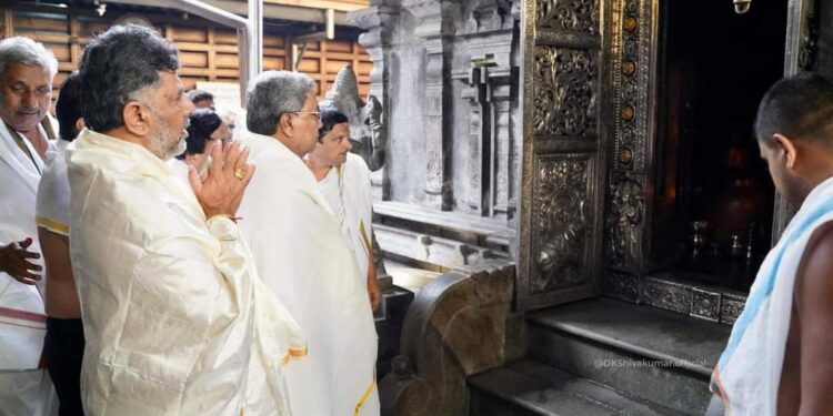 ಇತಿಹಾಸ ಪ್ರಸಿದ್ಧವಾಗಿ ಮಾತು ಬಿಡ ಮಂಜುನಾಥ ಖ್ಯಾತಿಯ ಧರ್ಮಸ್ಥಳ ಕ್ಷೇತ್ರಕ್ಕೆ ಕರ್ನಾಟಕ ಮುಖ್ಯಮಂತ್ರಿ ಸಿದ್ದರಾಮಯ್ಯ, ಉಪ ಮುಖ್ಯಮಂತ್ರಿ ಡಿ ಕೆ ಶಿವಕುಮಾರ್ ಭೇಟಿ ನೀಡಿ ದೇವರ ಆಶೀರ್ವಾದ ಪಡೆದರು.