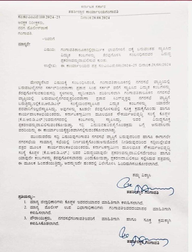 ಕೊಪ್ಪಳ: ವಿವಾದಾತ್ಮಕ ಗಂಗಾವತಿ ವಿದ್ಯುತ್ ಕಂಬ ತೆರವು ವಿಚಾರ. ತೆರವು ಆದೇಶ ಹಿಂಪಡೆದ ಅಧಿಕಾರಿಗಳು.